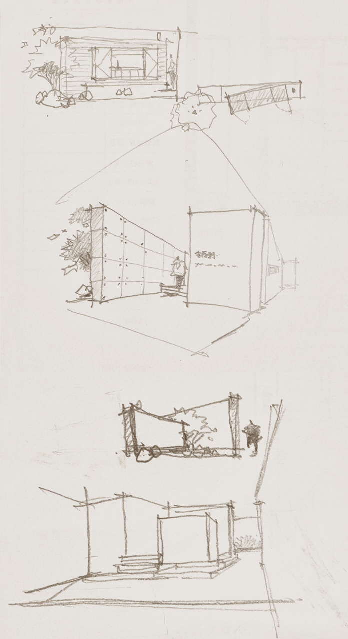 墙体是空间的明确边界,打破边界,就得先打破墙体。顺着展厅原有的外部轮廓,先勾勒出基本的平面形态,然后确定最佳的主入口位置,进而考虑墙体与墙体之间的连接关系,通过留缝、错位、片墙的置入来生成展厅外立面的新形象,在有限的面积之中,借由虚实相生的策略,创造无限的丰盈。