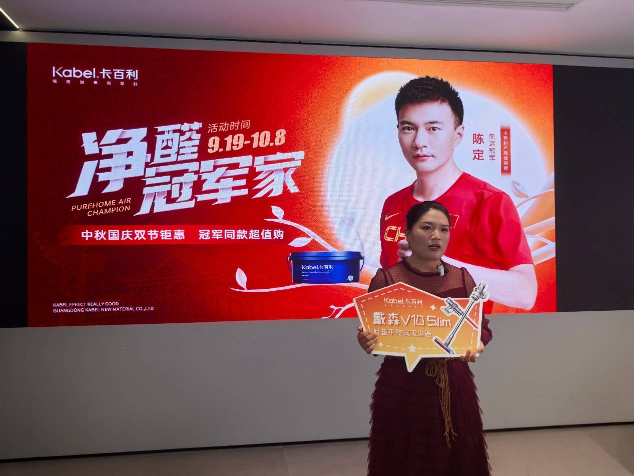 金秋十月,硕果累累。卡百利携手奥运冠军陈定开展的“净醛冠军家”主题营销活动于10月8日圆满落下帷幕。这场为期20天的中秋国庆大促活动,不仅受到消费者的热烈欢迎,更以“冠军级品质”的净醛效果,在市场中留下深刻印象,活动期间累计成交订单15000+,落地营销活动超600场。