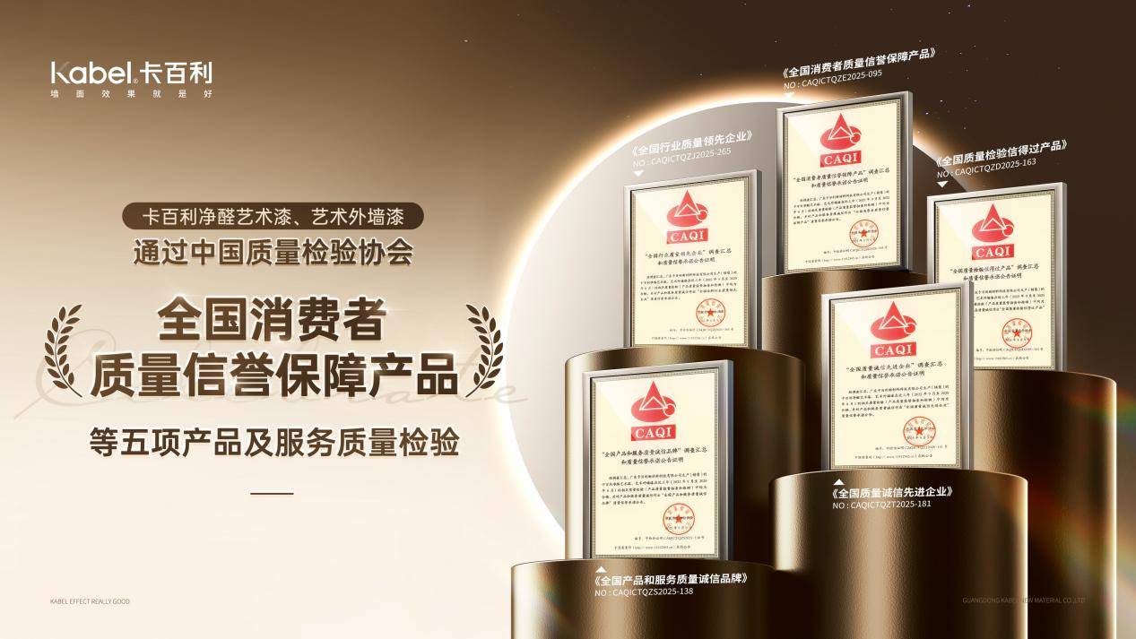此外,在近期国家市场监管总局指导的“质量月”活动中,卡百利一举斩获“全国质量检验信得过产品”、“全国消费者质量信誉保障产品”、“全国涂料行业质量领先企业”、“全国产品和服务质量诚信品牌”、“全国质量诚信先进企业”五项殊荣,充分体现其在净醛艺术漆和艺术外墙漆领域的综合创新实力。
