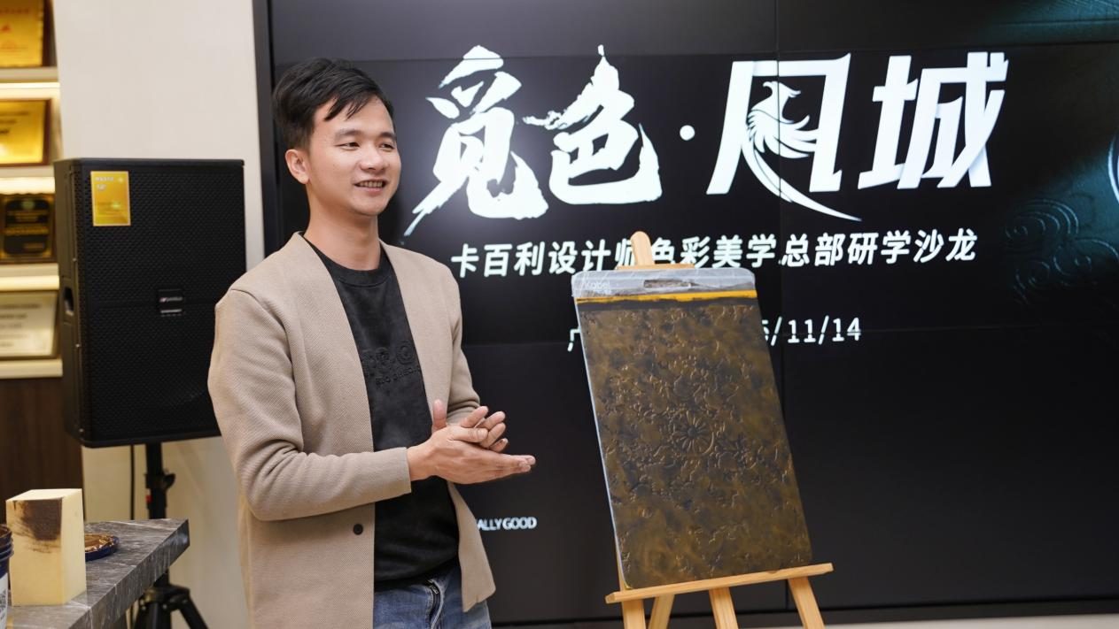 随后,在卡百利广州分公司总经理张腾先生的带领下,大家深入地了解了卡百利品牌的核心理念及产品体系。他生动地展示了品牌如何通过“好产品、好色彩、好工艺、好服务”四大战略配称,为设计师提供强大的创作素材和解决方案。他还进一步强调卡百利一直以来深研用户需求,通过打造兼具卓越性能与绿色环保的高品质产品,兼顾美学与实用,为消费者构筑健康家居的有效保障。