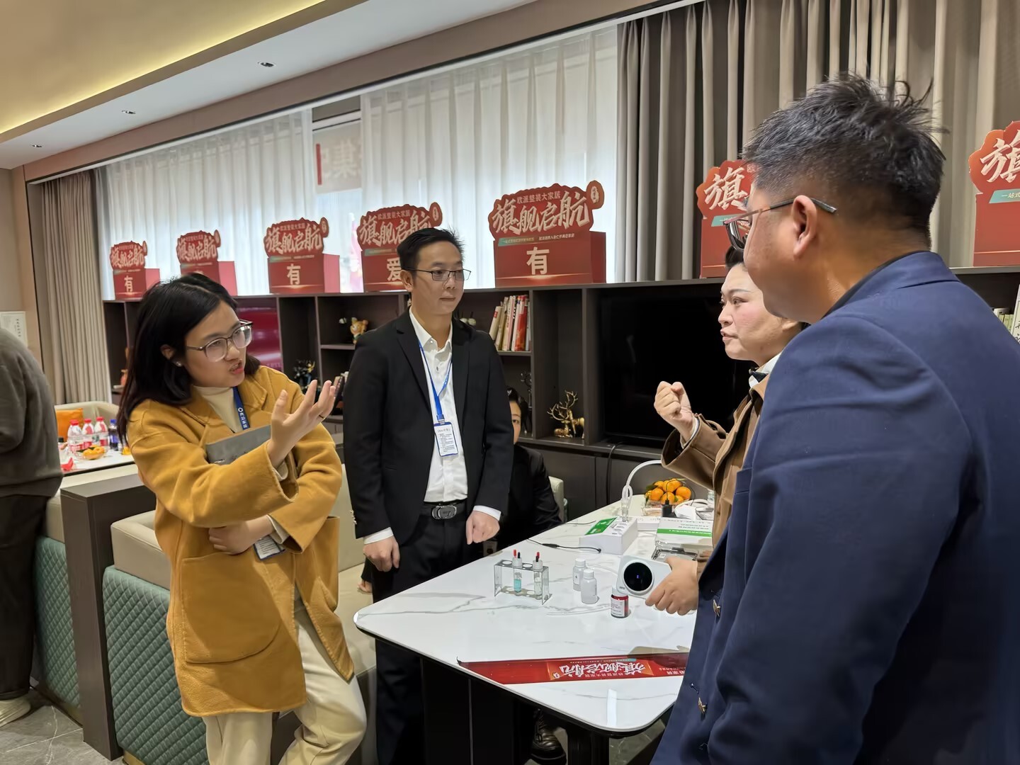 2025年11月20日,贵州仁怀卡百利艺术漆团队走进典范装饰公司,成功举办了一场以“色彩美学与健康家居”为主题的设计师专场培训沙龙。本次活动通过色彩体系解析、净醛实验演示以及产品工艺深度讲解,为典范装饰的设计师团队提供了一场兼具创意启发设计灵感交流。