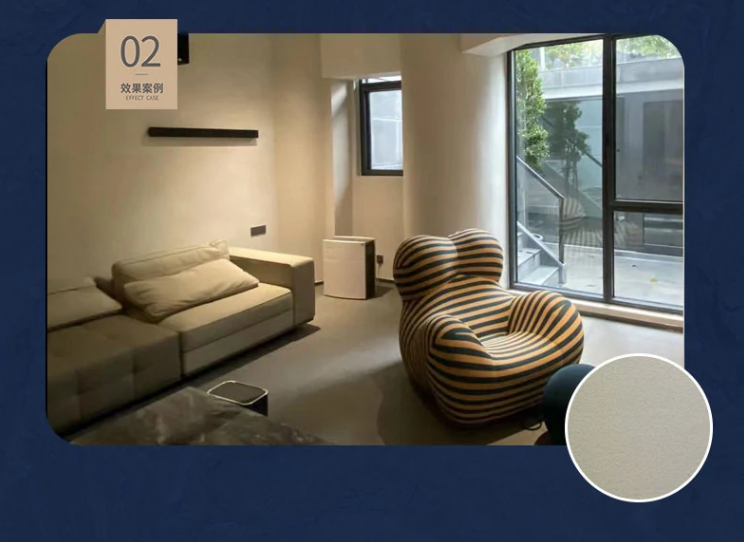纹理质感的多样性与适配性同样重要。以卡百利微水泥艺术漆为例,其设计灵感源自水泥墙的复古质感,通过黑白灰色系的精准调配,营造出沉静又不失现代感的空间氛围。原始粗糙的水泥肌理与细腻工艺碰撞,形成独特的侘寂美学风格,既能适配工业风、极简风等现代设计,又能与新中式等风格和谐共生。更难得的是,这种艺术漆不受底材限制,可附着于瓷砖、木饰面等任何平整表面,可塑性极强。